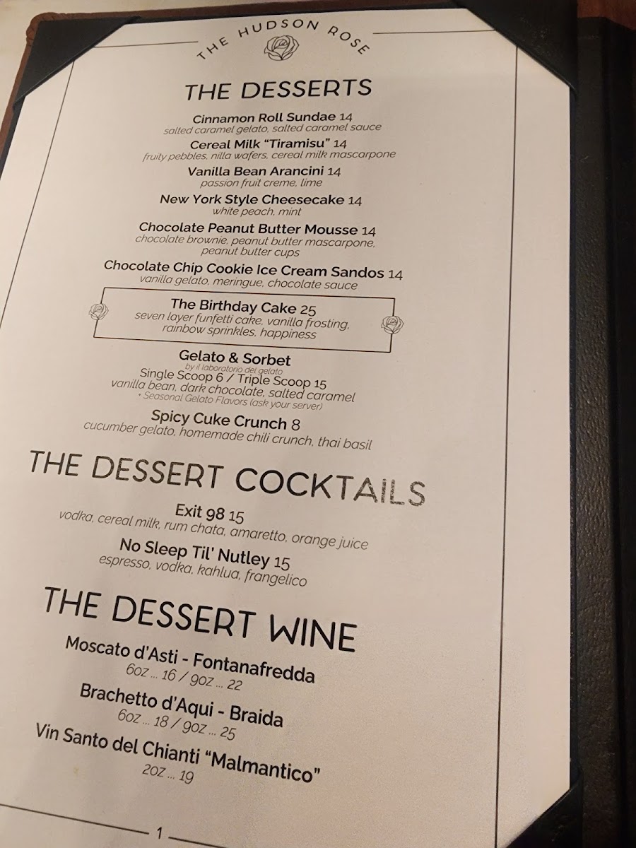 The Hudson Rose Menu